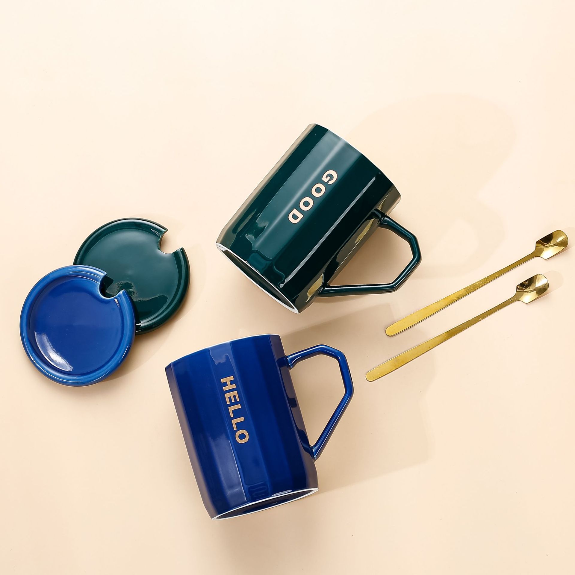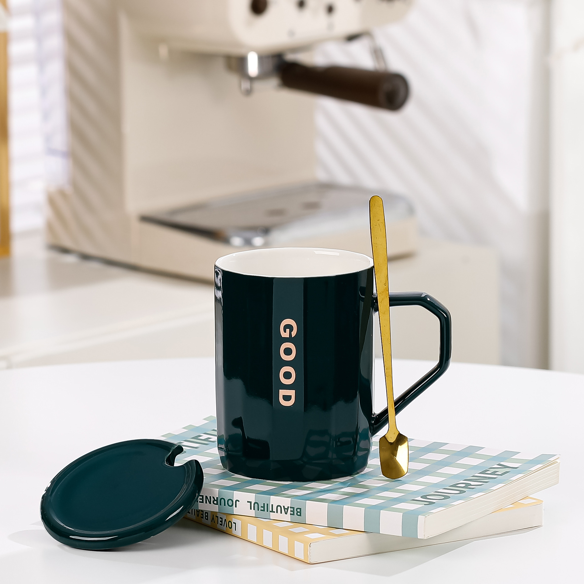 北欧ins风陶瓷杯带盖家用办公室咖啡杯情侣水杯高颜值礼品马克杯