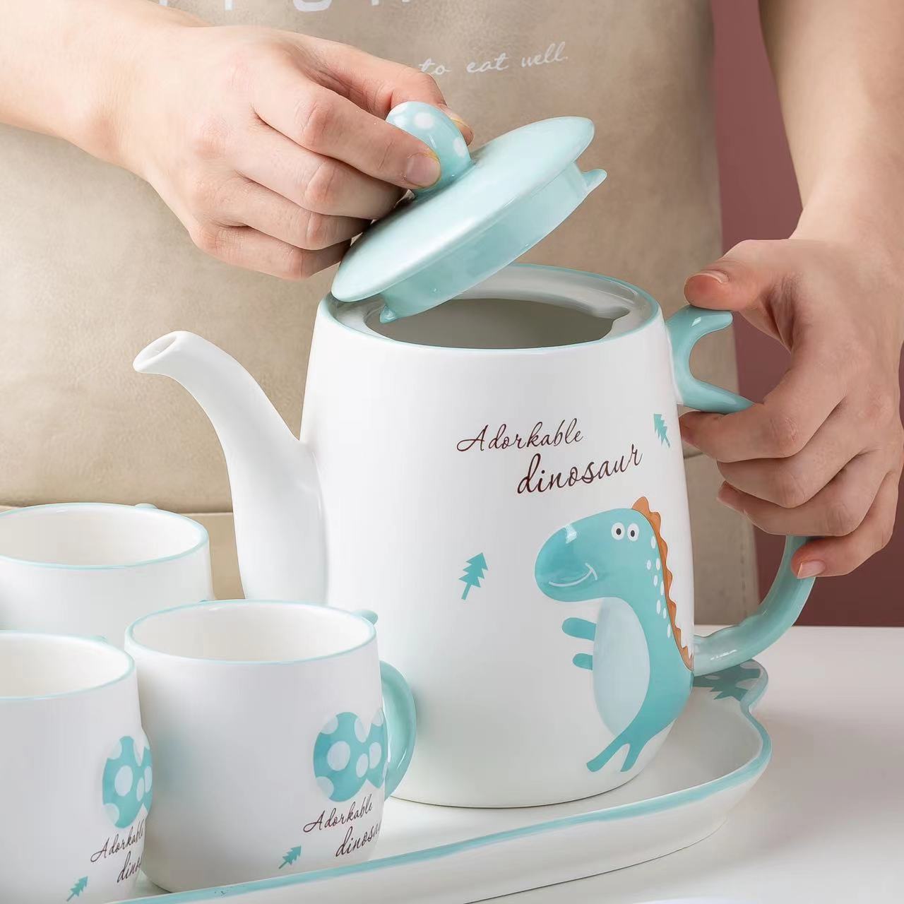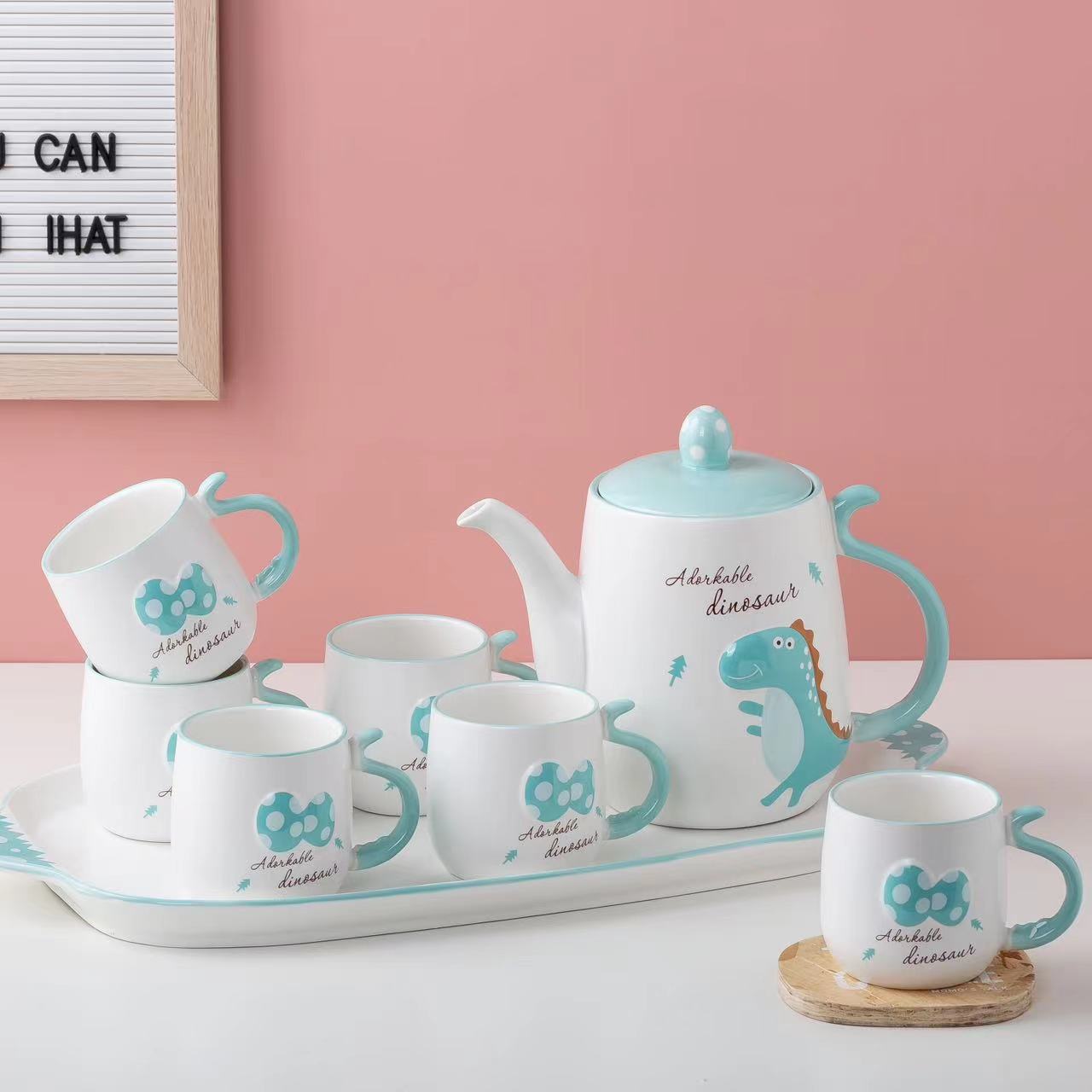 创意水杯套装小恐龙高颜值陶瓷水杯家用客厅水壶耐高温水具礼品套