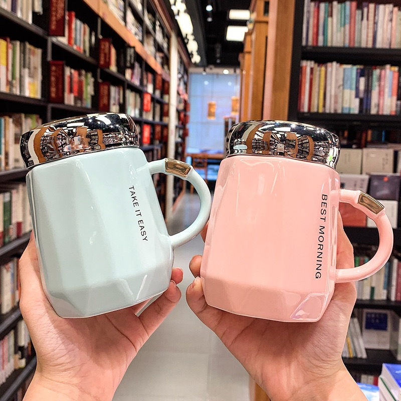 情侣陶瓷马克杯高档办公室带盖喝水杯子ins高颜值大容量保温杯