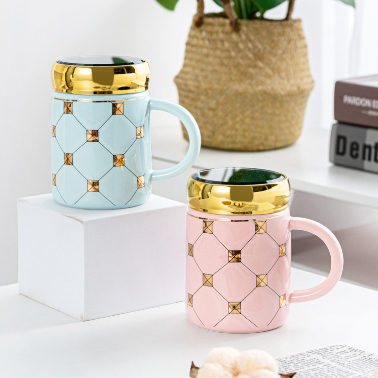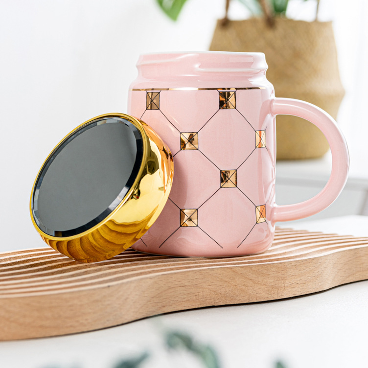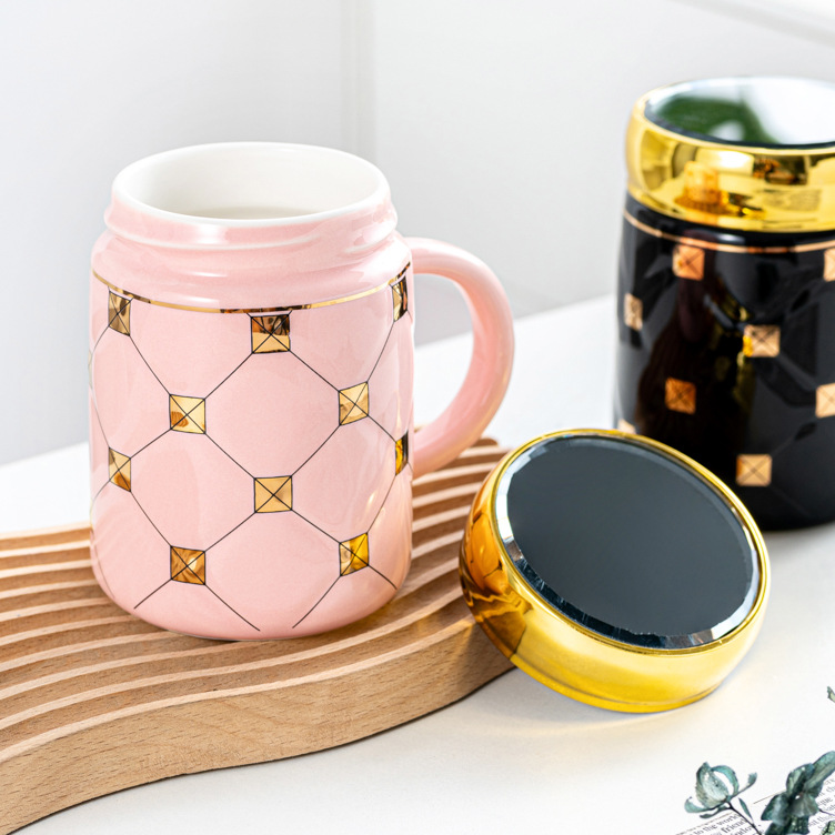 夏季高颜值大容量镜面保温杯带盖马克杯陶瓷杯情侣牛奶杯咖啡杯