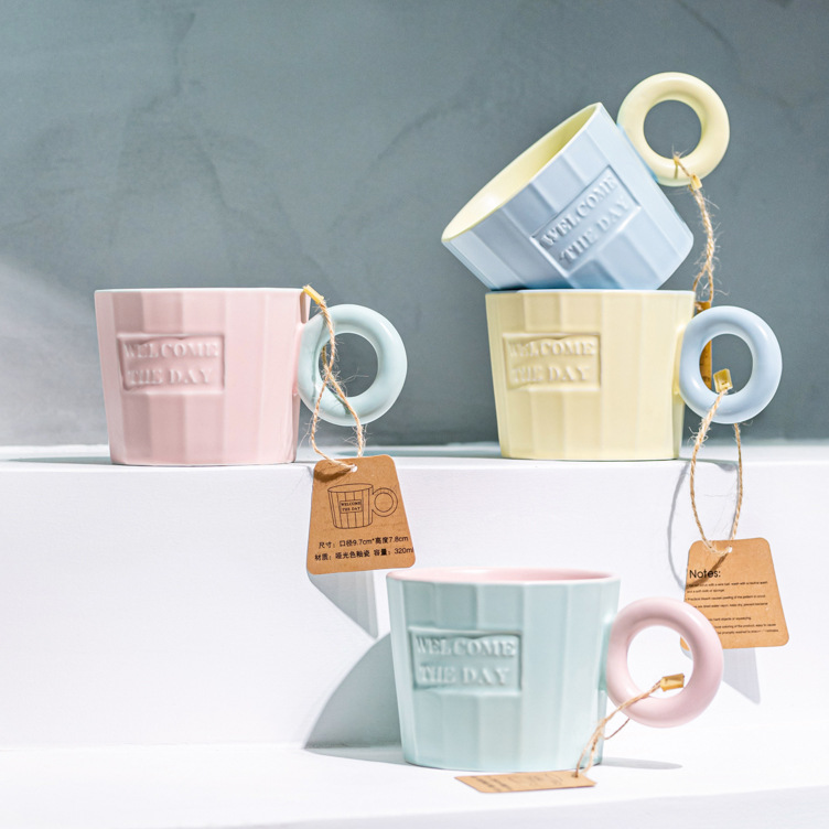 陶瓷杯子高颜值情侣少女心马克杯创意简约咖啡杯ins风家用水杯