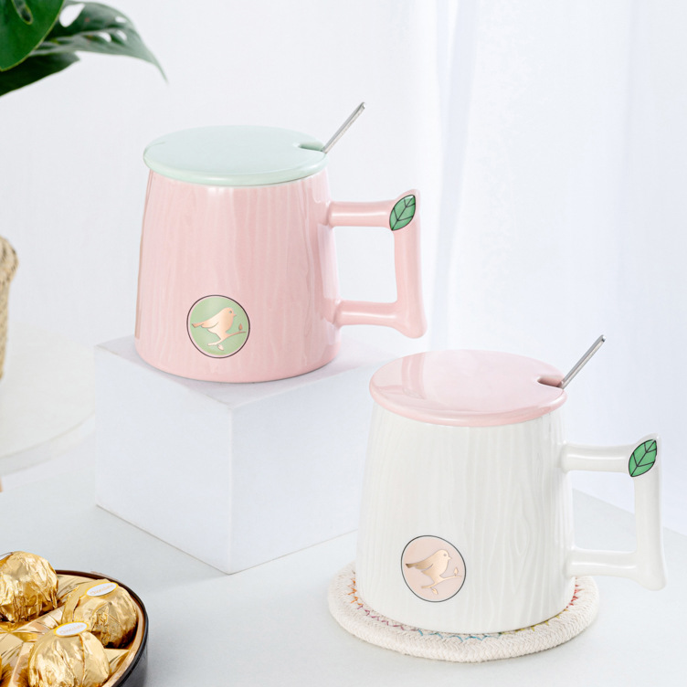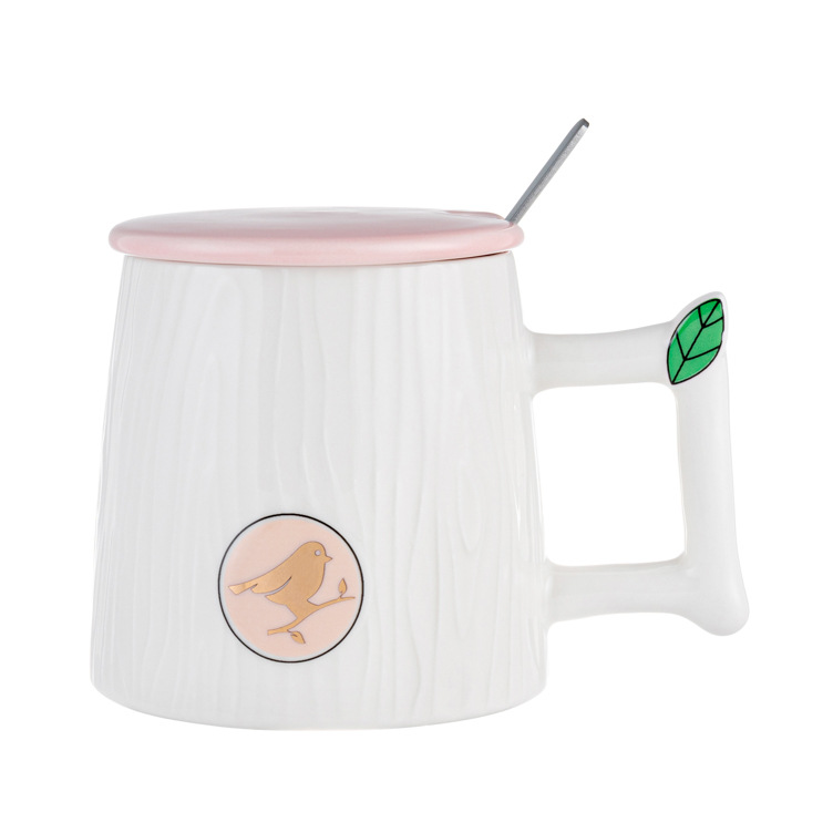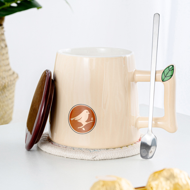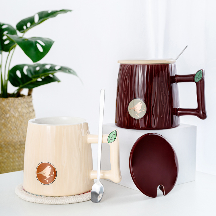 陶瓷马克杯创意仿树纹水杯家用喝水杯办公室咖啡杯茶杯陶瓷杯带盖
