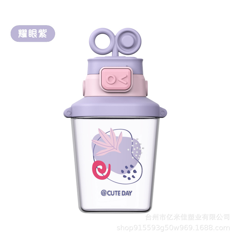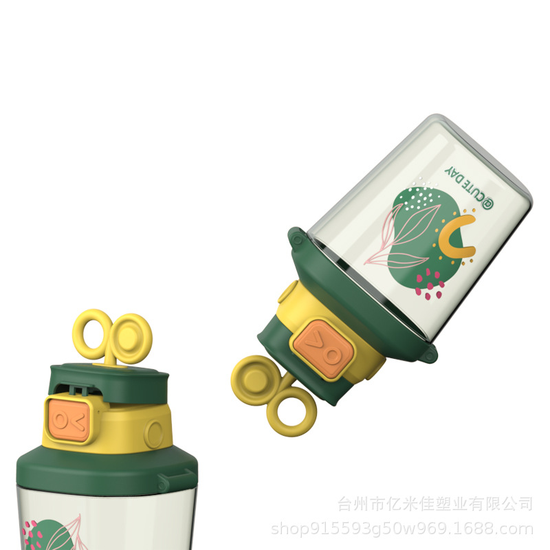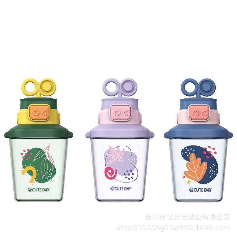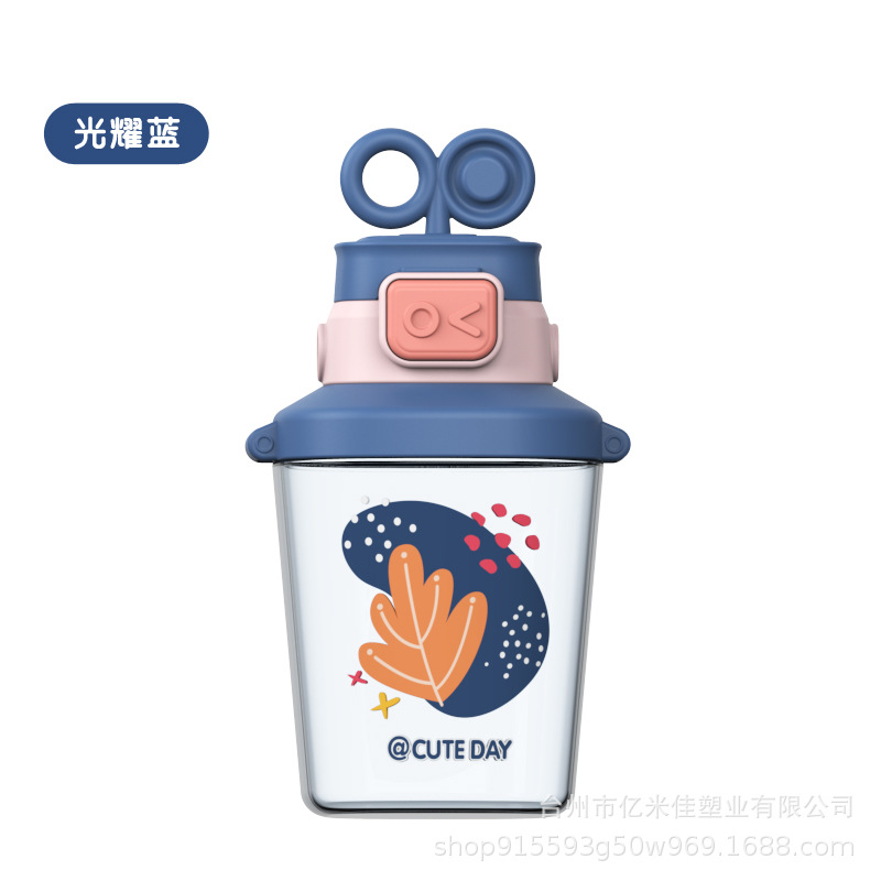 新款朋克机器人吸管杯儿童弹跳水杯可爱运动户外背带学生塑料水壶