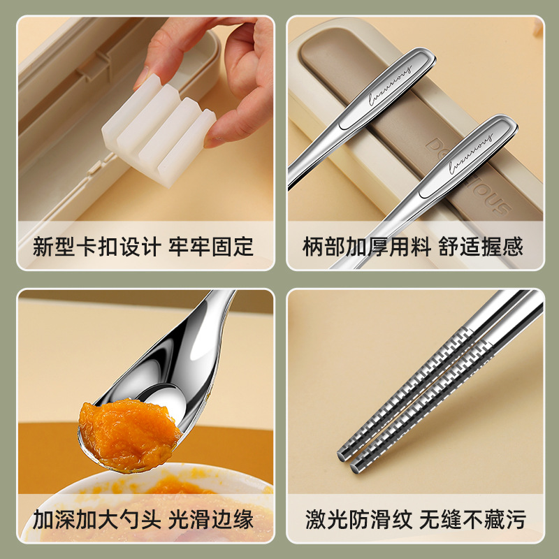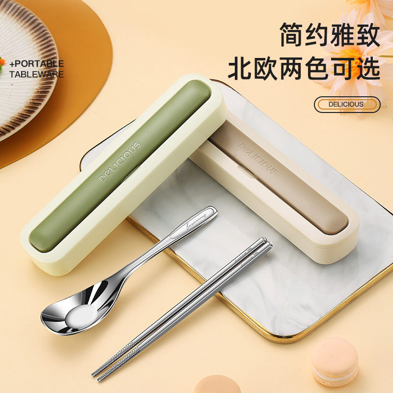 上班族便携餐具套装 316不锈钢勺子筷子 高颜值北欧风餐具收纳盒