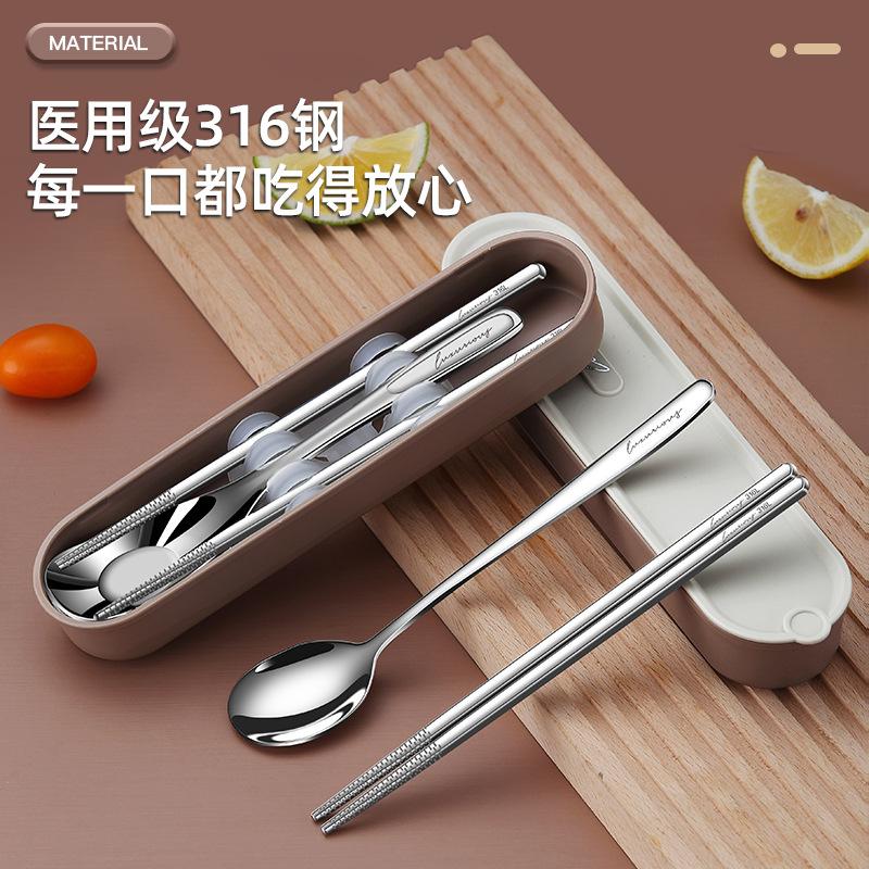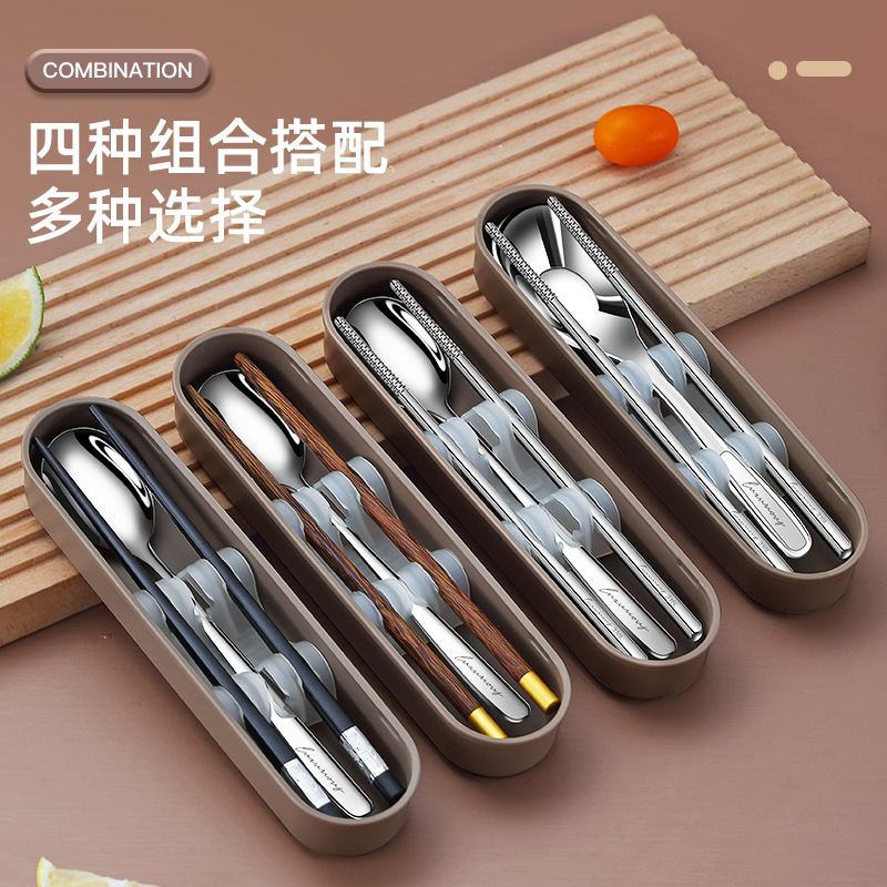 高颜值ins风学生户外旅行便携式316不锈钢勺子筷子餐具盒套装批发