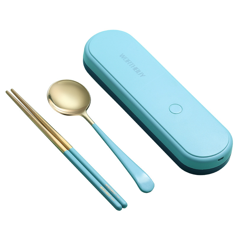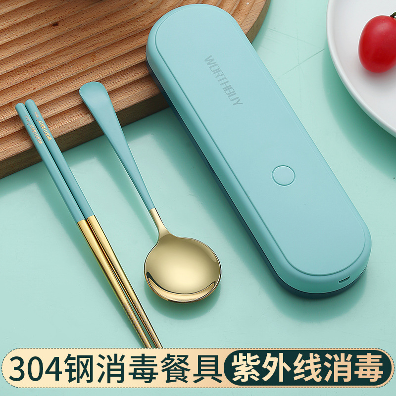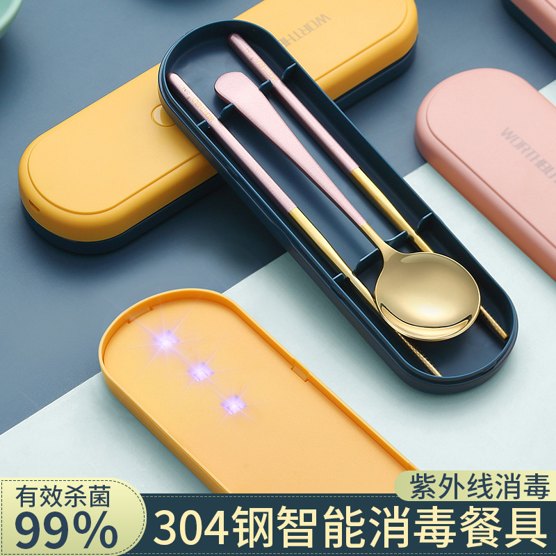 消毒便携餐具304不锈钢筷子勺子套装上班族餐具紫外线杀菌消毒盒