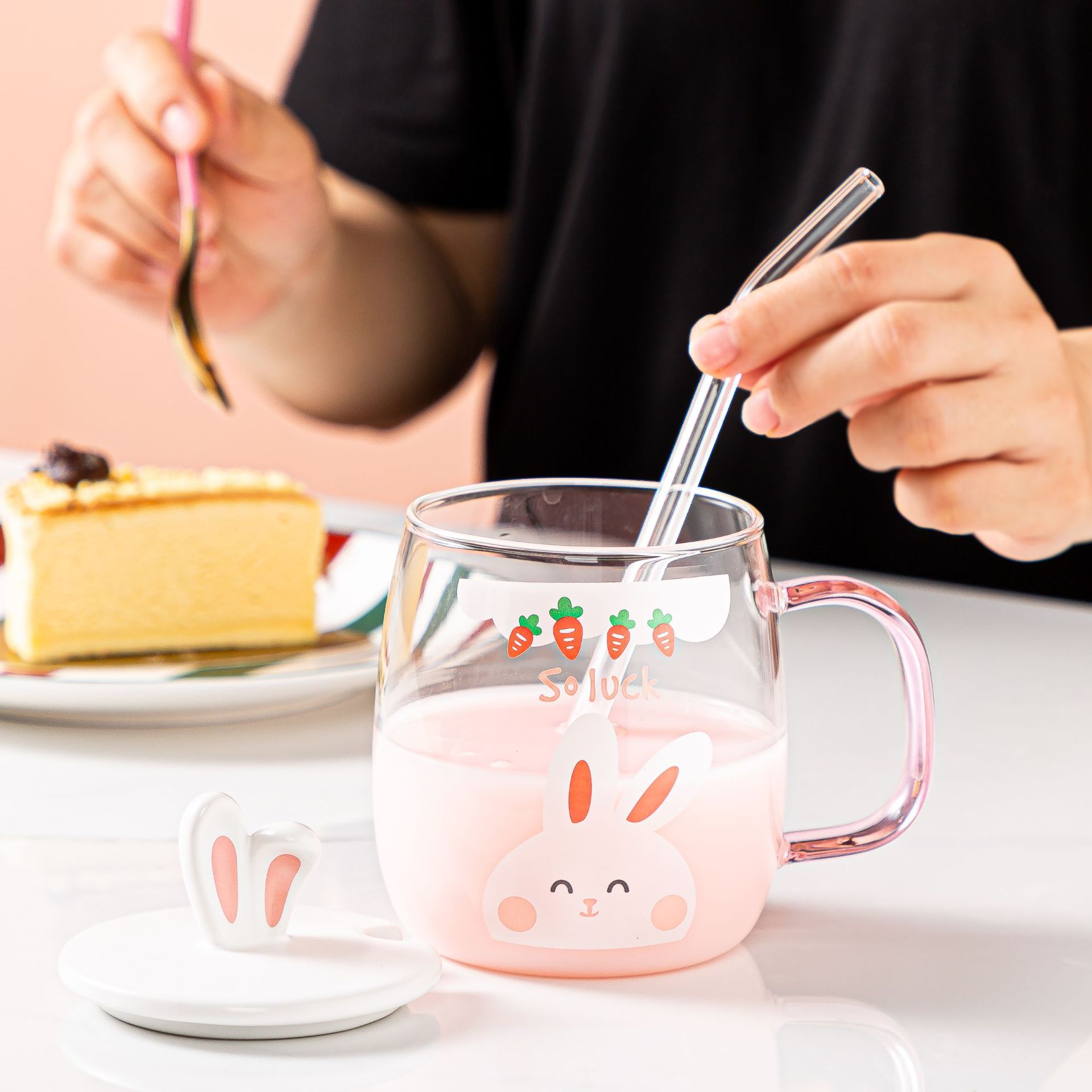 可爱美少女热爱吸管玻璃杯情侣学生办公室牛奶杯卡通ins风随手杯
