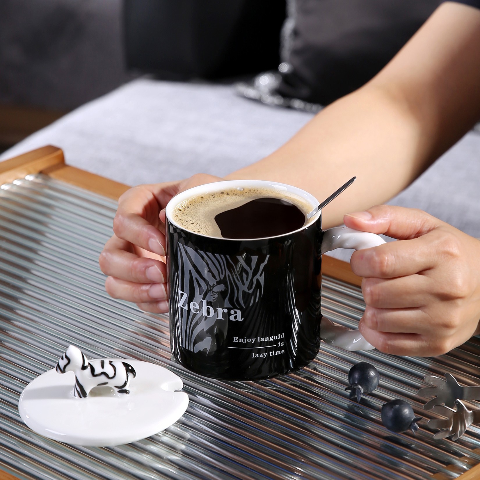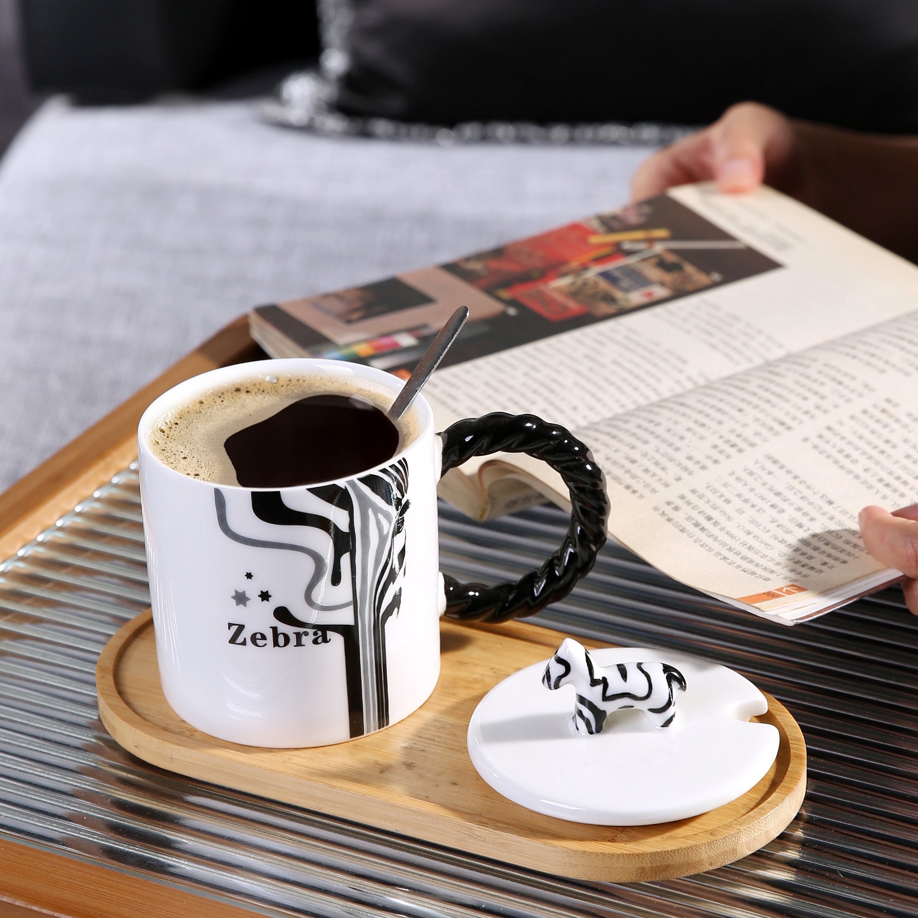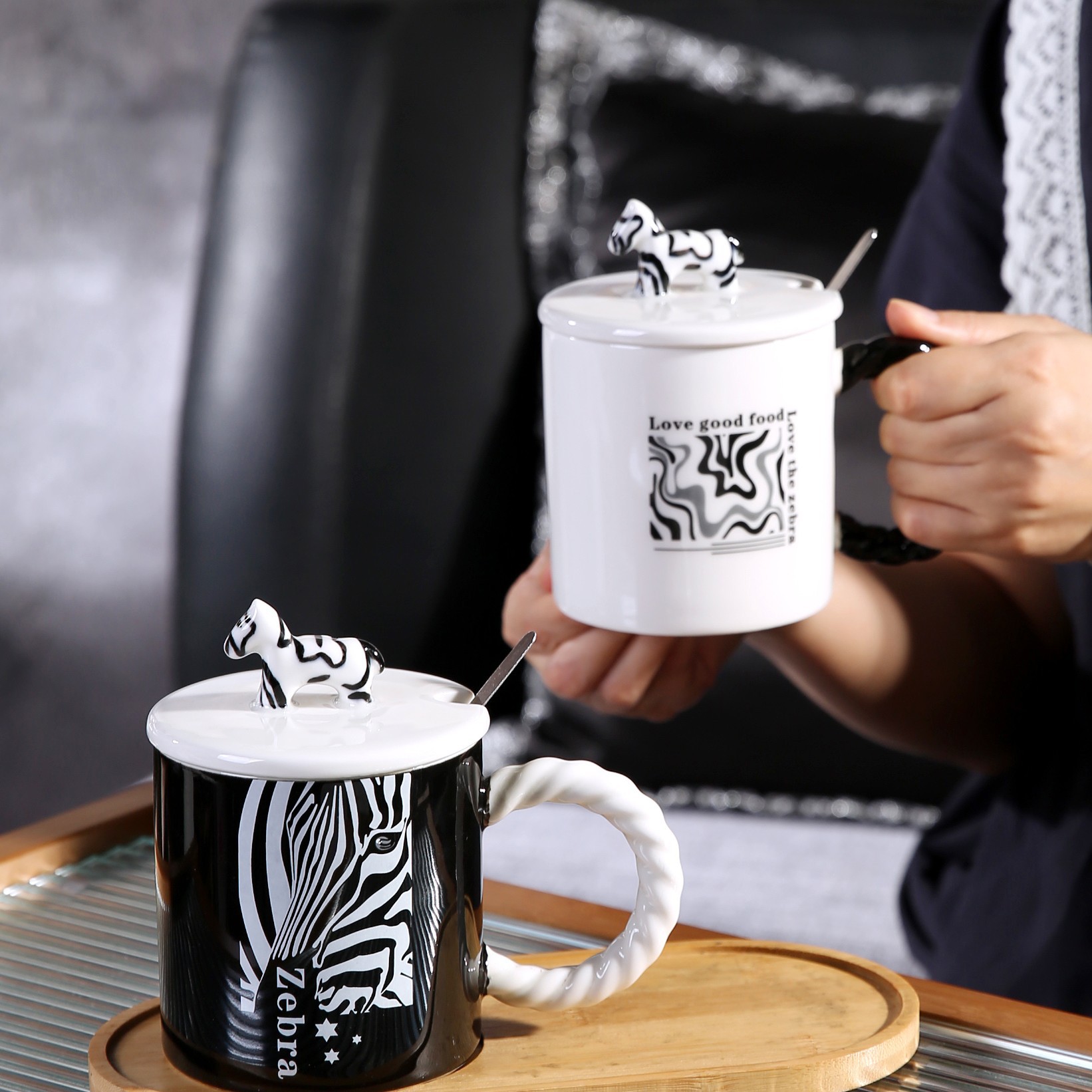 创意ins斑马黑白撞色陶瓷杯北欧精致简约马克杯伴手礼杯家用水杯