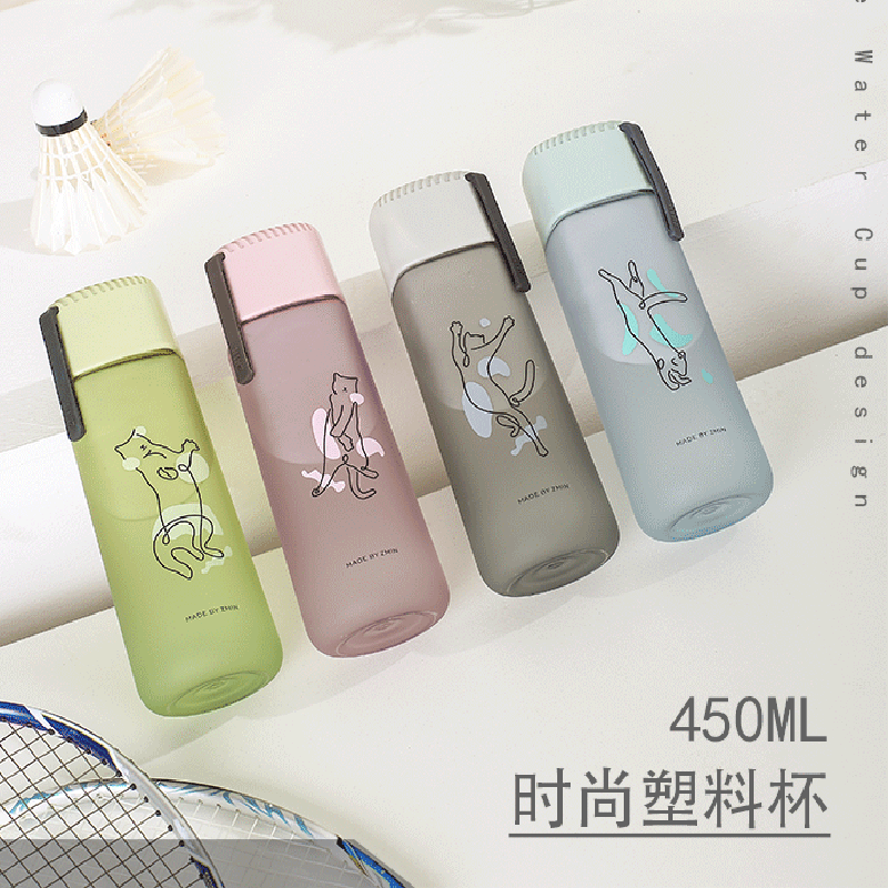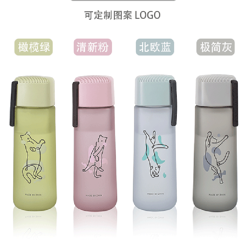创意太空杯批发简约清新猫咪户外男女生便携运动塑料礼品印刷logo