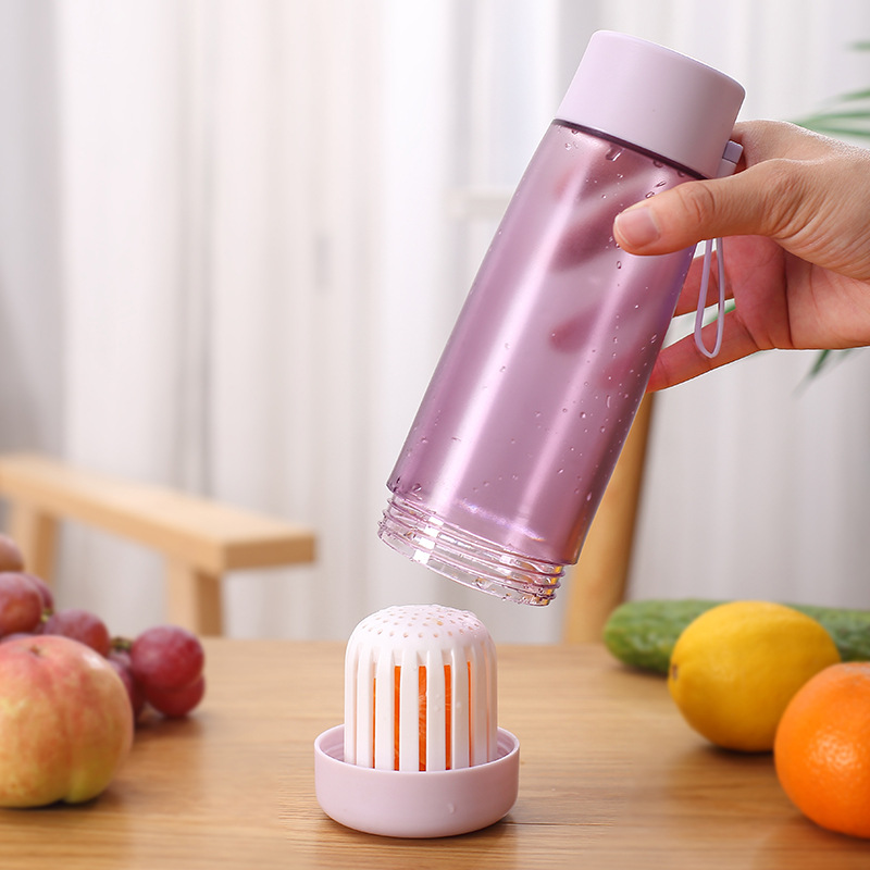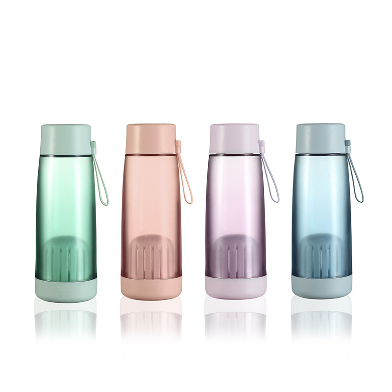 加厚双盖水果泡茶杯食品级耐高温塑料水杯女便携提手运动水杯印字