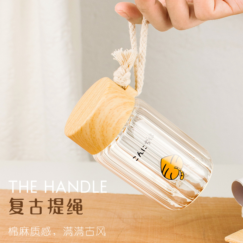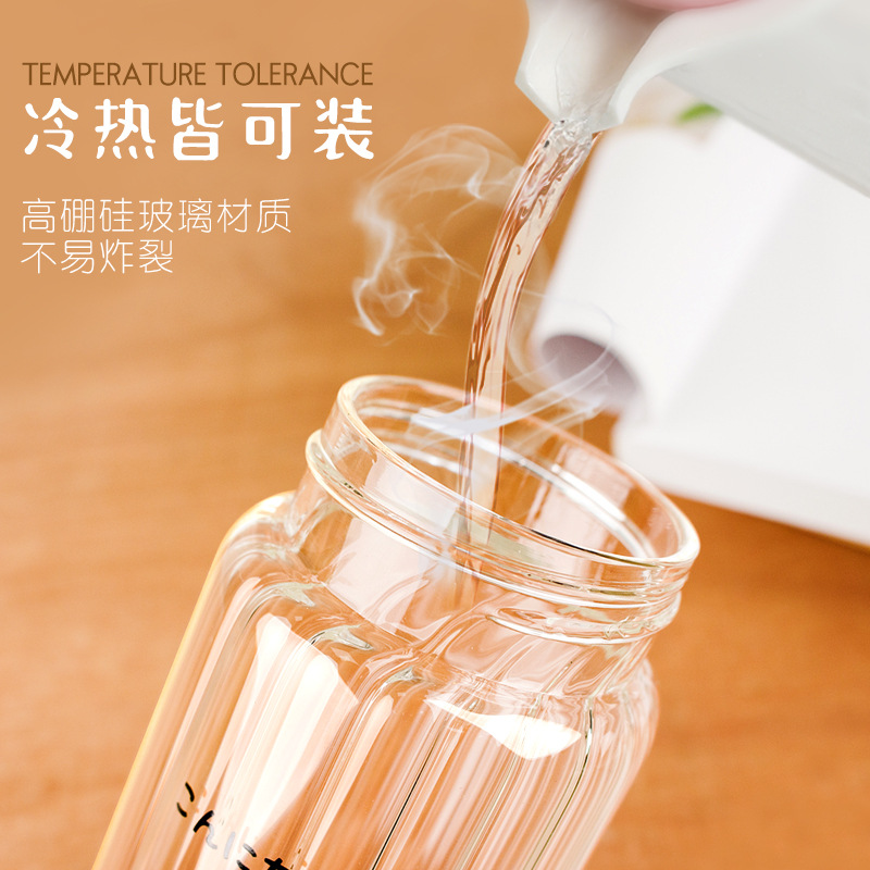 创意小清新水杯时尚办公室耐高温卡通高硼硅玻璃杯户外便携礼品杯