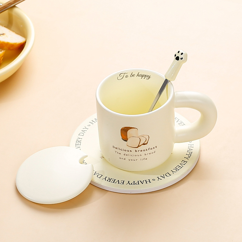 ins风奶油色复古小熊马克杯牛角包陶瓷杯牛奶咖啡杯情侣可加logo