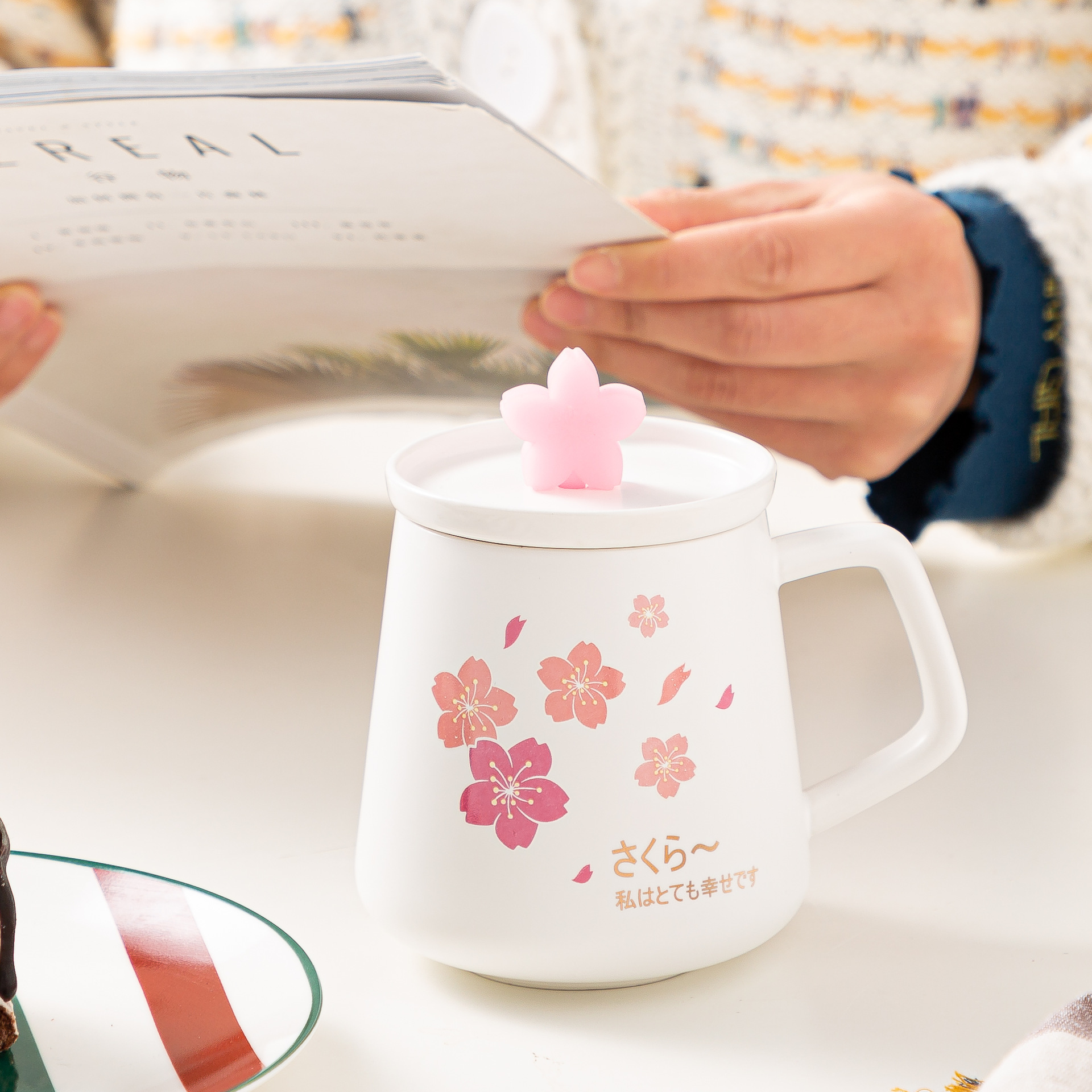 高颜值粉色少女心樱花陶瓷马克杯ins风家用办公早餐礼品批发情侣